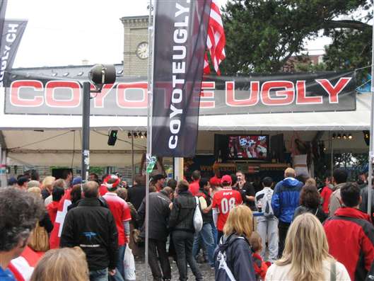 Coyote Ugly in the FanZone literally outside our door