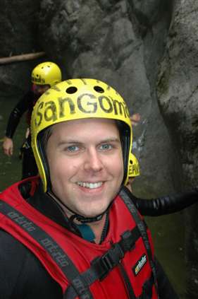Jump against wall and fall into water...
